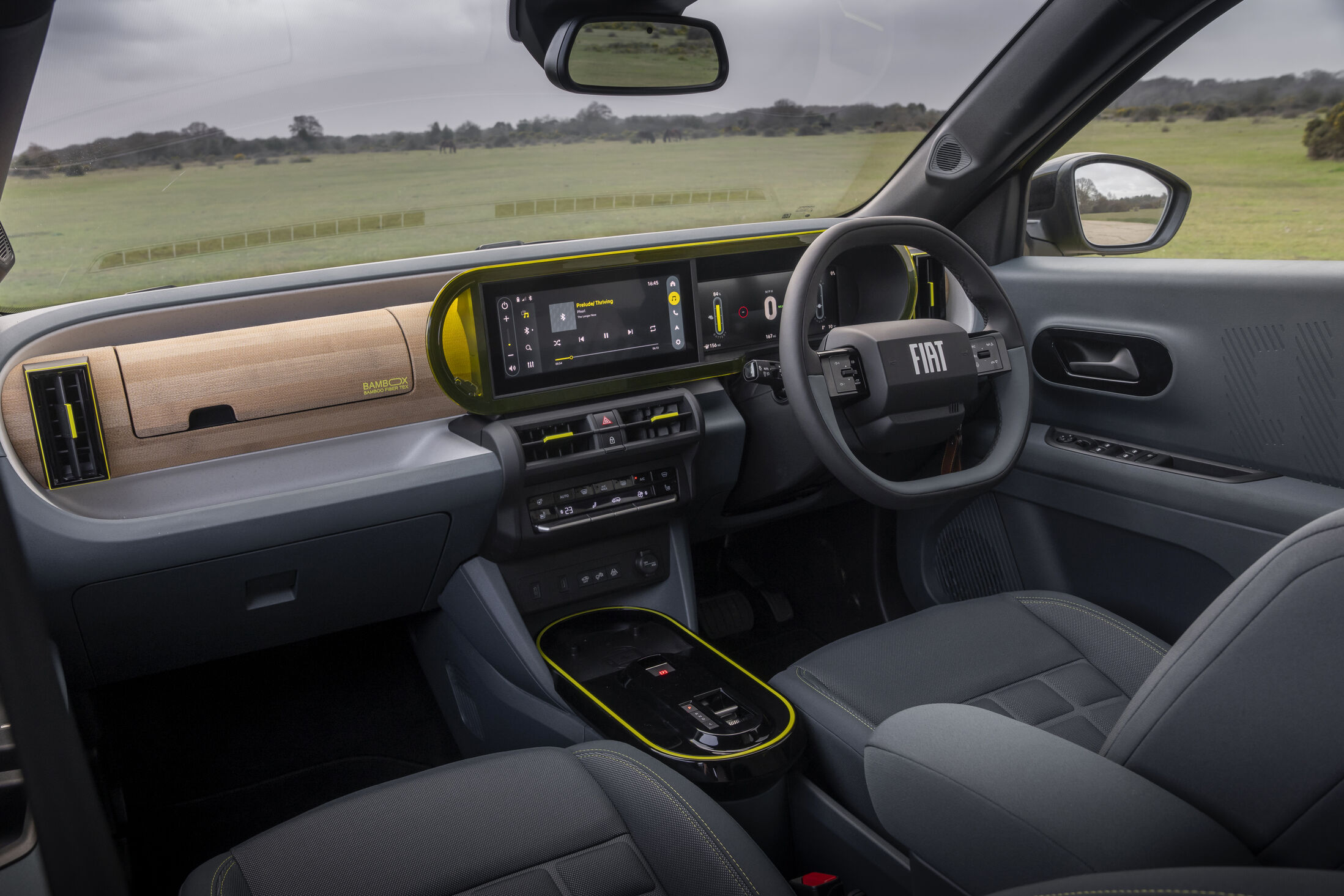 Inside, the oval dashboard design is a highlight. Inspired by Fiat’s iconic rooftop test track, points are earned for finding the model of the original driving around its edge. Eyes are also drawn to rectangular air vents and green details. Other dashboard features, are the long under tray, that gives useful stowage, and the ‘Bambox’ fitted on the passenger of range-topping ‘La Prima’ models, made from Bamboo fibre - a favourite food of real Pandas.