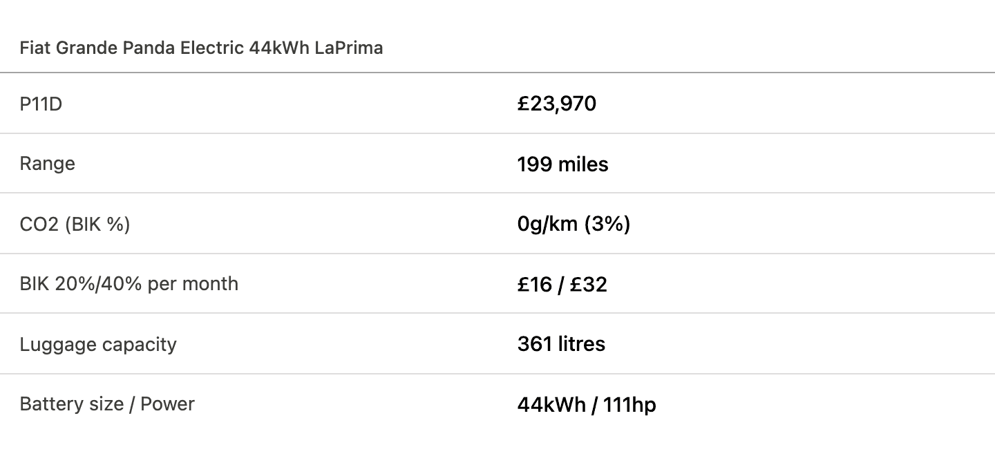 Fiat’s best small car since the original 500 is the obvious fleet choice - if the Renault 5 E-Tech is a stretch.
